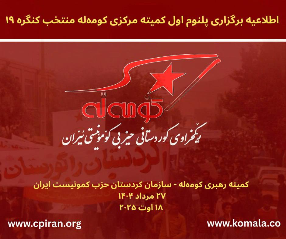 اطلاعیه برگزاری پلنوم اول کمیته مرکزی کومەله منتخب کنگره ۱۹