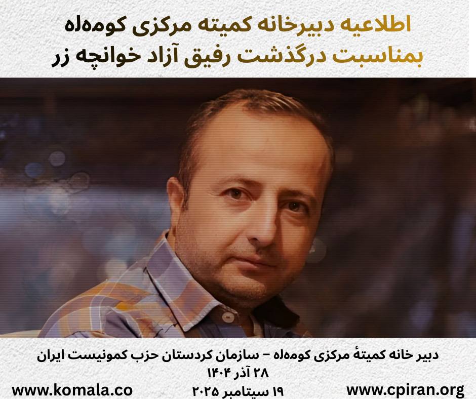 اطلاعیه دبیرخانه کمیته مرکزی کومەلە بمناسبت درگذشت رفیق آزاد خوانچه زر