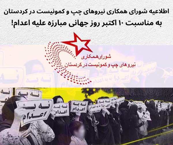 اطلاعیه “شورای همکاری نیروهای چپ و کمونیست در کردستان” به مناسبت ۱۰ اکتبر روز جهانی مبارزه علیه اعدام!