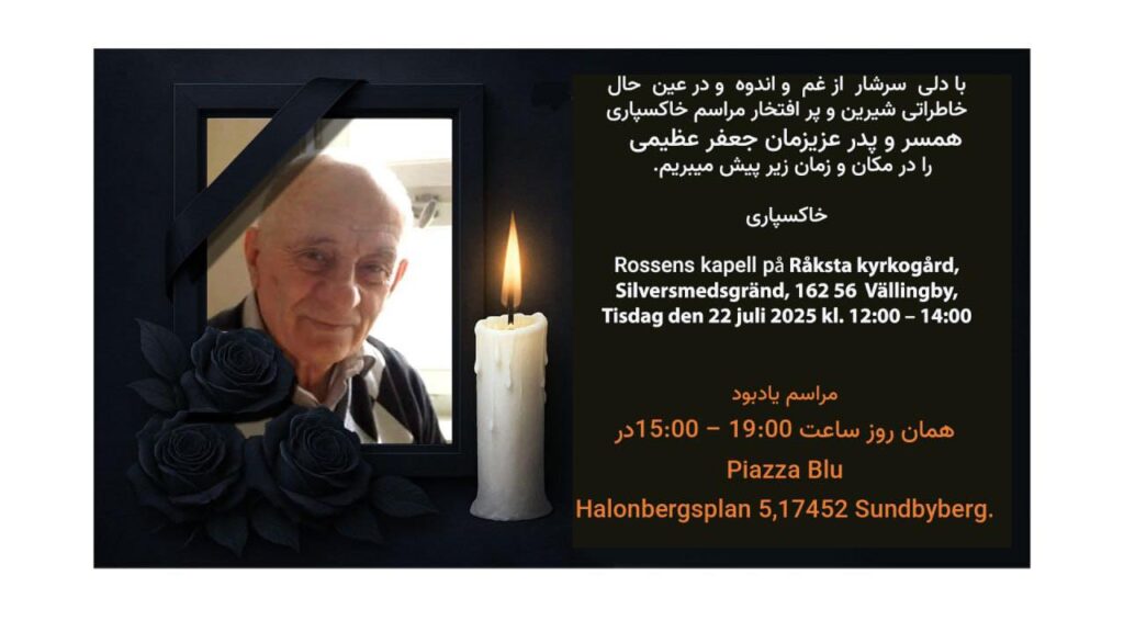 با تاسف فراوان به اطلاع می رسانیم که جعفر عظیمی در بامداد روز یکشنبه ۱۳ ژوئیه برابر با ۲۲ تیر ماه ۱۴۰۴ در بیمارستانی در شهر استکهلم زندگی را به درود گفت و دوستداران و بستگانش را در اندوهی فراوان فرو برد. او زاده شهر مهاباد در سال ۱۳۱۵ شمسی بود و بعد از فوت پدر و مادرش، خیلی زود سرپرستی خواهران و برادارانش را به عهده گرفت.