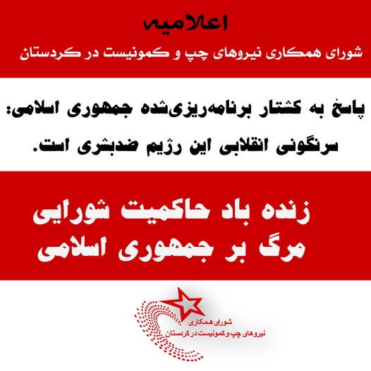 اعلامیه شورای همکاری نیروهای چپ و کمونیست در کردستان: پاسخ به کشتار برنامهریزیشده جمهوری اسلامی سرنگونی انقلابی این رژیم ضدبشری است!
