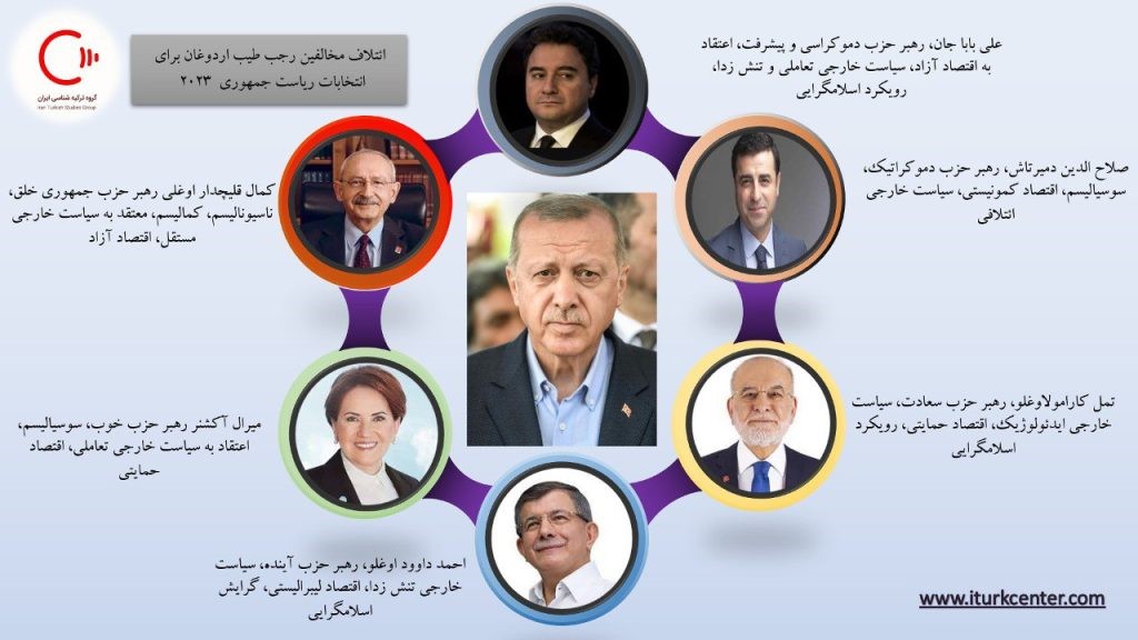 اکنون پایان دادن به حکمرانی اردوغان نقطه اتکای احزاب مخالف هست که معتقدند دموکراسی در ترکیه از طریق یک سیستم پارلمانی به کرسی خواهد نشست نه ریاست جمهوری. اکنون ائتلافی مشهور به ائتلاف ششگانه یا میز شش نفره فعال است که در این ائتلاف احزاب مهمی مانند جمهوری به رهبری کمال قلیچدار اوغلو، حزب خوب به رهبری مرآل آکشنر و چهار حزب مهم دیگر وجود دارد. علاوه بر این گروه شش گانه، حزب قدرتمند دموکراتیک خلقها که همواره طرفدار حل مسئله مردم کرد در این کشور است هم علیه حکمرانی استبدادی اردوغان فعالیت میکند.