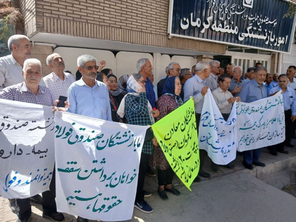 به گزارش شورای بازنشستگان ایران، روز یکشنبه ١٣ مهر، تعدادی از بازنشستگان صنایع فولاد با برگزاری تجمع اعتراضی در شهرهای اهواز و اصفهان خواستار رسیدگی به مطالبات خود شدند. اجرای همسانسازی، حذف سقف حقوق، عدم ادغام صندوق بازنشستگی صنایع فولاد در صندوق بازنشستگی کشوری و همچنین حل مشکلات مربوط به خدمات درمانی از جمله مطالبات این بازنشستگان معترض است.