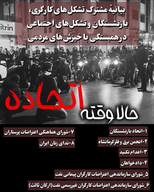 بیانیهٔ مشترک تشکلهای کارگری، بازنشستگان و تشکلهای اجتماعی در همبستگی با خیزشهای مردمی