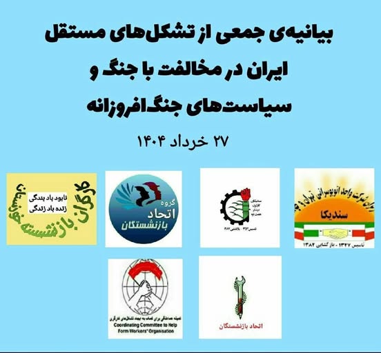 طبقهی کارگر ایران نهتنها هیچ نفعی از جنگ ندارد، بلکه این جنگها مستقیماً زندگی و امنیت او را هدف قرار دادهاند. تداوم تحریمهای اقتصادی، تخصیص بودجههای کلان به امور نظامی، و محدودسازی آزادیها منجر به فقر گسترده تر، سرکوب وسیع تر، گرسنگی، مرگ و آوارگی میلیونها نفر خواهد شد. ما تشکلها و فعالان مستقل کارگری و مردمی در ایران، هیچ توهمی نسبت به اینکه آمریکا و اسرائیل میخواهند آزادی، برابری و عدالت برای ما به ارمغان بیاورند، نداریم ــ همانگونه که هیچ توهمی به ماهیت و عملکرد سرکوبگرانه، مداخلهگرانه، ماجراجویانه و ضدکارگری جمهوری اسلامی نداریم.