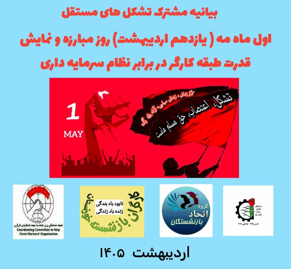 بیانیه مشترک تشکل های مستقل: اول ماه مه (یازدهم اردیبهشت) روز مبارزه و نمایش قدرت طبقه کارگر در برابر نظام سرمایه داری