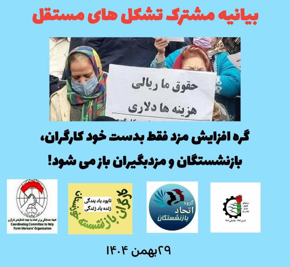بیانیه مشترک تشکل های مستقل: گره افزایش مزد فقط بدست خود کارگران، بازنشستگان و مزدبگیران باز می شود!