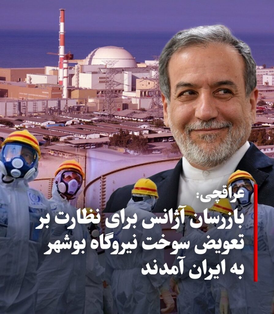 وزیر امور خارجه ایران از ورود بازرسان آژانس بینالمللی انرژی اتمی برای نظارت بر تعویض سوخت نیروگاه بوشهر خبر داد. عباس عراقچی در این رابطه هرگونه توافق نهایی جدید با آژانس را تکذیب کرد.