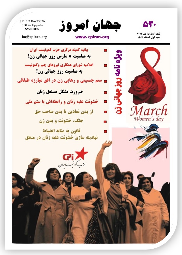شماره ۵۳۰ جهان امروز نشریه سیاسی حزب کمونیست ایران منتشر شد! (ویژه نامه روز جهانی زن)