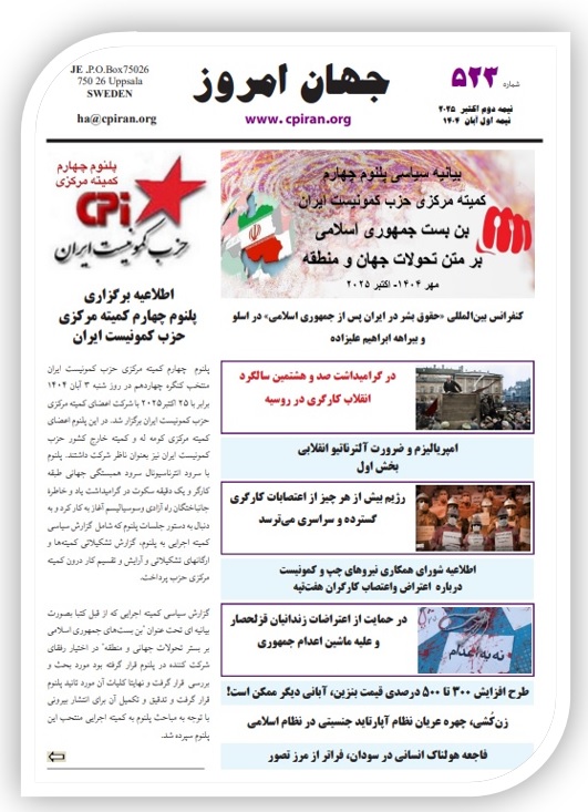 شماره ۵۲۳ جهان امروز نشریه سیاسی حزب کمونیست ایران منتشر شد!