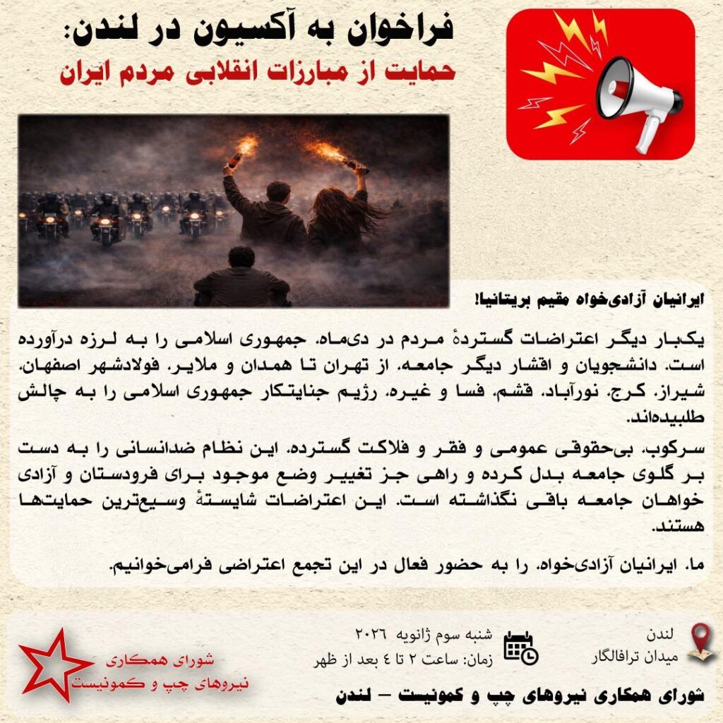 فراخوان شورای همکاری نیروهای چپ و کمونیست به آکسیون در لندن در حمایت از مبارزات انقلابی مردم ایران