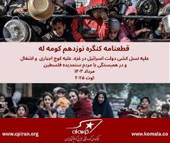 قطعنامه کنگره نوزدهم کومه له علیه نسل کشی دولت اسرائیل در غزه، علیه کوچ اجباری و اشغال و در همبستگی با مردم ستمدیده فلسطین