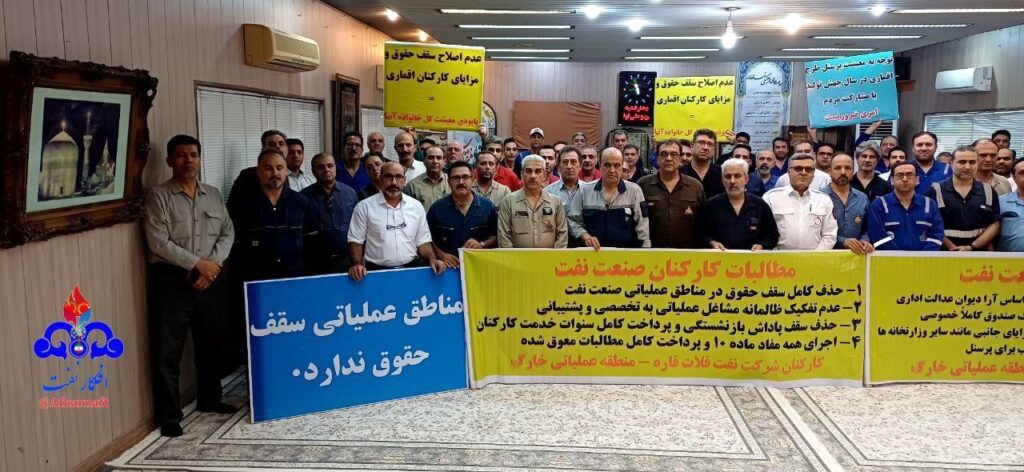 روز چهارشنبه ۲ مهر، کارکنان شرکت نفت فلات قاره شاغل در منطقه خارک، تجمع اعتراضی برگزار کردند.