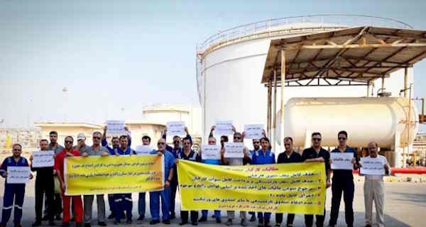 کارکنان شرکت نفت فلات قاره در منطقه سیری در اعتراض به وضعیت در آمد شغلی تجمع کردند