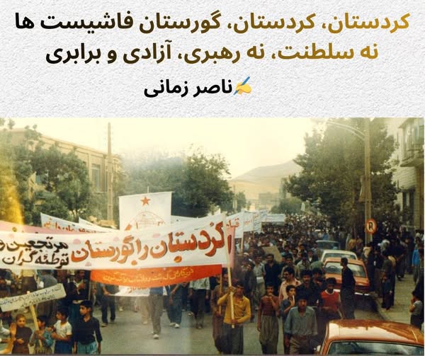 کردستان، کردستان، گورستان فاشیستان! نه سلطنت، نه رهبری، آزادی و برابری!