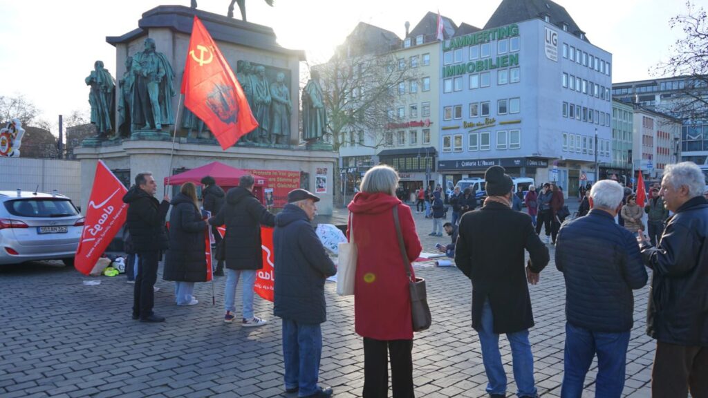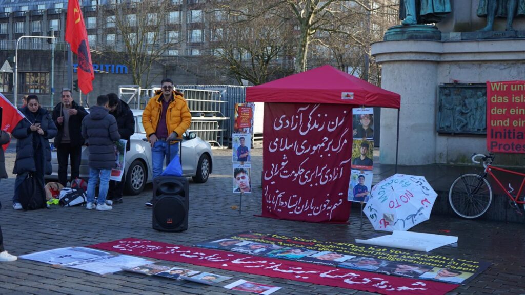 شنبه ۷ فوریه ۲۰۲۶ به فراخوان شورای حمایت از مبارزات مردم در ایران، شورای همکاری نیروهای چپ و کمونیست در کردستان، حوزه کلن تشکیلات خارج حزب کمونیست ایران و تشکیلات آلمان حزب کمونیست کارگری ایران-حکمتیست آکسیونی در همبستگی با مبارزات مردم در ایران و محکومیت قتلهام وسیع مردم بدست جمهوری اسلامی برگزار گردید. در این آکسیون اعتراضی لیا رایزنر نماینده پارلمان آلمان از حزب چپ، توماس سانتیلان از مسئولین منطقهای حزب چپ آلمان، لیزا از حزب MLPD، امیر عسگری از حزب حکمتیست، محمد عذیری از شورای همکاری نیروهای چپ و کمونیست کردستان و نینا عارفی از حزب کمونیست ایران سخنرانی کردند.