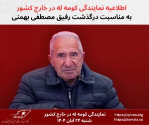 با کمال تألم و تاسف بامداد شنبه پانزدهم نوامبر، رفیق مصطفی در کشور هلند چشم از جهان فرو بست.رفیق مصطفی یکی از…