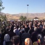 فرياد مرگ بر دیکتاتور توسط مردم حاضر در قبرستان آیچی سقز در حین خاکسپاری
