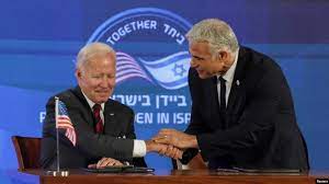 جو بایدن، رئیسجمهوری آمریکا، و یائیر لاپید، نخستوزیر دولت انتقالی اسرائیل، روز پنجشنبه ۲۳ تیرماه در یک نشست مشترک "اعلامیه اورشلیم" را…
