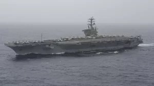 تصویر ماهوارهای جدیدی که روز یکشنبه ۱۳ ژوئیه (۲۲ تیر) منتشر شده است، استقرار گروه عملیاتی دریایی آمریکا به رهبری ناو هواپیمابر…