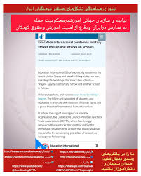 سازمان جهانی آموزش حملات نظامی اخیر ایالات متحده و اسرائیل به ایران، از جمله بمبارانهایی که دو مدرسه دبستان «شجره طیبه» و…