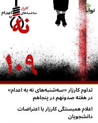سحرگاه روز سهشنبه ۵ اسفندماه، احکام اعدام دستکم ۱۰ زندانی در زندانهای بم، برازجان، ایلام، خواف، اهواز، جیرفت، سیرجان، رشت، بیرجند و…